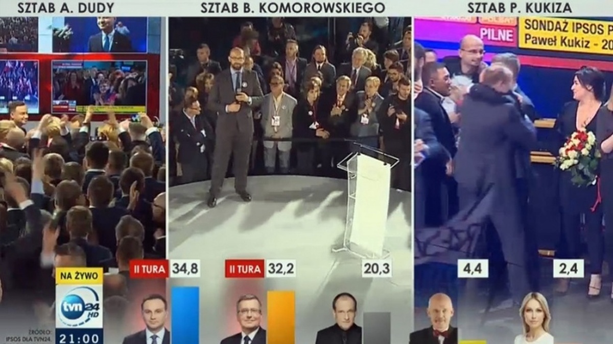 Według powyborczych sondaży to nie Bronisław Komorowski został zwycięzcą pierwszej tury głosowania, lecz jego największy rywal - Andrzej Duda (PiS). Rewelacyjny wynik uzyskał Paweł Kukiz, który zdobył aż 20,3 proc.