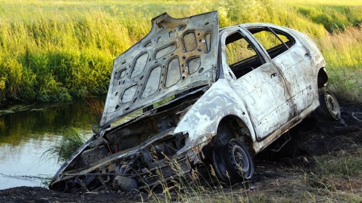 Doszczętnie spalony samochód i ciało mężczyzny w niewielkiej rzece ujawniono w Gucinie k. Czerwina.