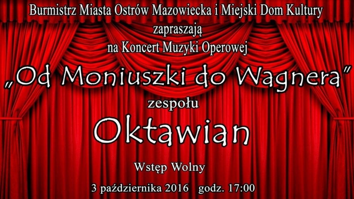 Męski zespół muzyczny "Oktawian" zaprezentuje swoje umiejętności podczas koncertu muzyki operowej, który odbędzie się w sali konferencyjnej ostrowskiego urzędu miasta. Koncert zaplanowano na poniedziałek 3 października. Początek o godz. 17.00.