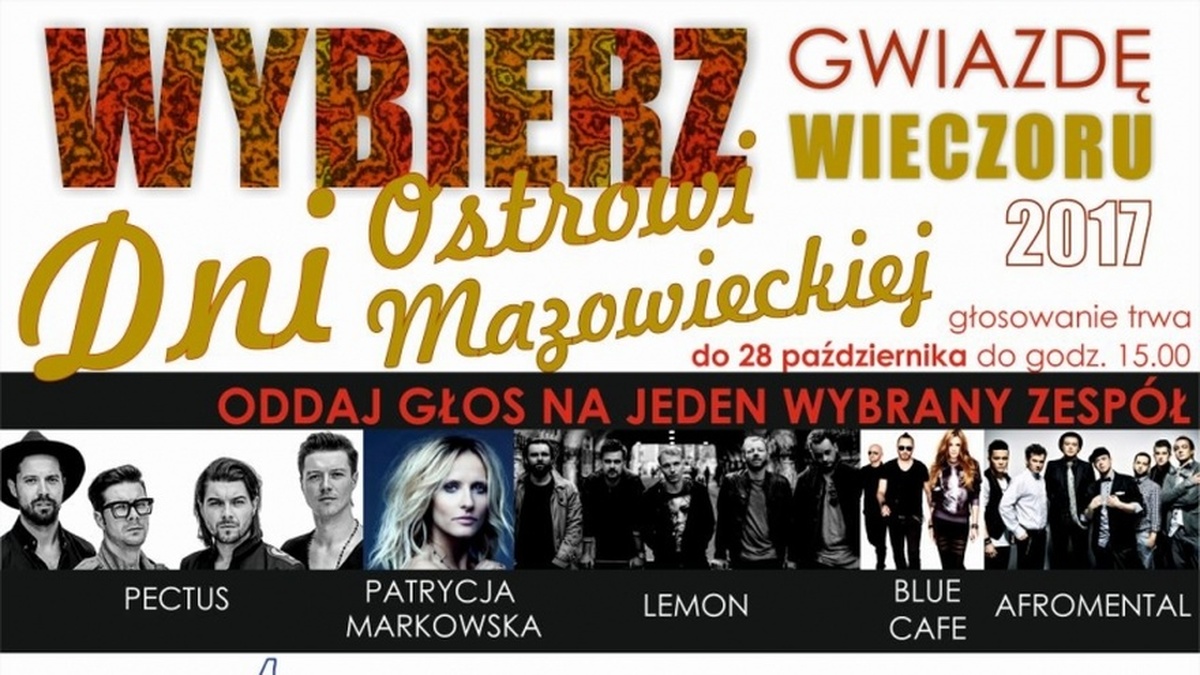 Trwają przygotowania do dni Ostrowi Mazowieckiej w 2017 roku. Ostrowski urząd miasta proponuje mieszkańcom udział w wyborze artysty na sobotni koncert gwiazdy wieczoru.