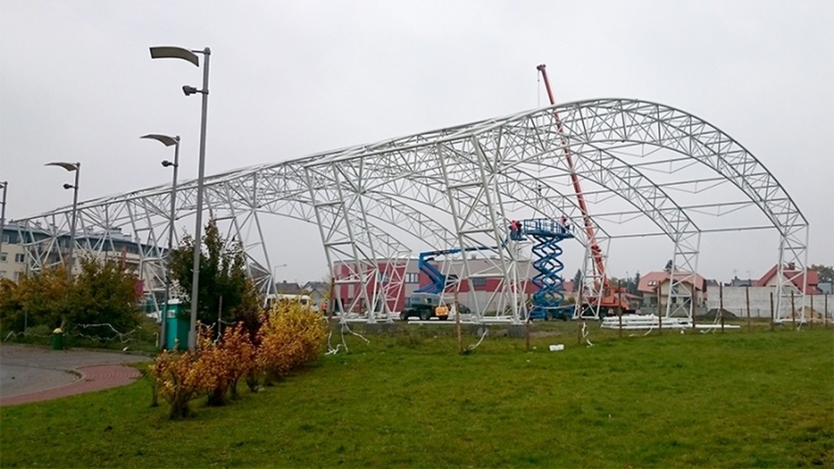 Trwają prace przy budowie konstrukcji hali, w której znajdować będzie się miejskie lodowisko. Pierwszy etap inwestycji obejmuję budowę fundamentów i zadaszenia. Budowa zostanie wykonana na obszarze 1564 m kw., a najwyższy punkt dachu sięgnie 12,63 metrów.
