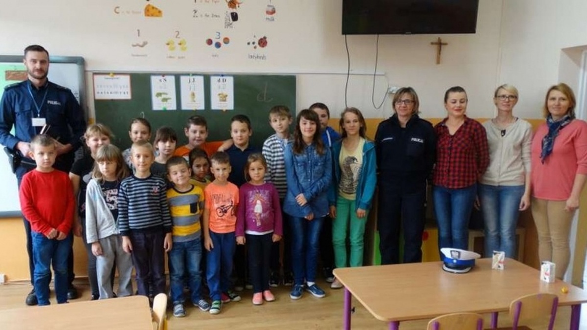 Ostrowscy policjanci kontynuują akcję pn. "Bezpieczna droga do szkoły" w powiecie ostrowskim. Tym razem funkcjonariusze policji spotkali się z przedszkolakami i uczniami Niepublicznej Szkoły podstawowej w miejscowości Trynosy-Osiedle.