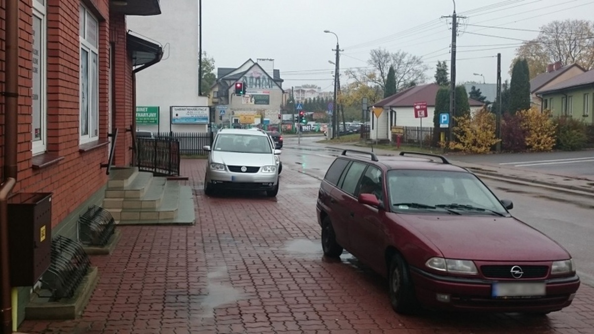 Przy sklepie z częściami samochodowymi przy ul. Piłata w Ostrowi Mazowieckiej notorycznie zastawiany jest chodnik. Jak wiadomo chodnik to nie parking dla samochodów podjeżdżających pod sklep. Pieszy, żeby przejść chodnikiem musi iść slalomem,aby minąć kolejne auta.