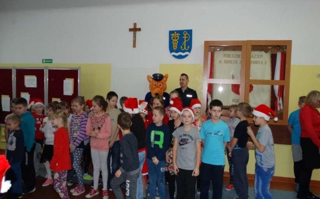 Dwóch funkcjonariuszy policji z ostrowskiej komendy wspólnie z liskiem spotkali się z uczniami Zespołu Szkół w Nurze. Spotkaniu wzięli udział uczniowie podstawówki i gimnazjum.