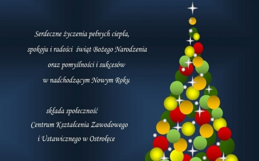 Serdeczne życzenia pełnych ciepła, spokoju i radości świąt Bożego Narodzenia oraz pomyślności i sukcesów w nadchodzącym nowym 2017 roku składa społeczność Centrum Kształcenia Zawodowego i Ustawicznego w Ostrołęce.