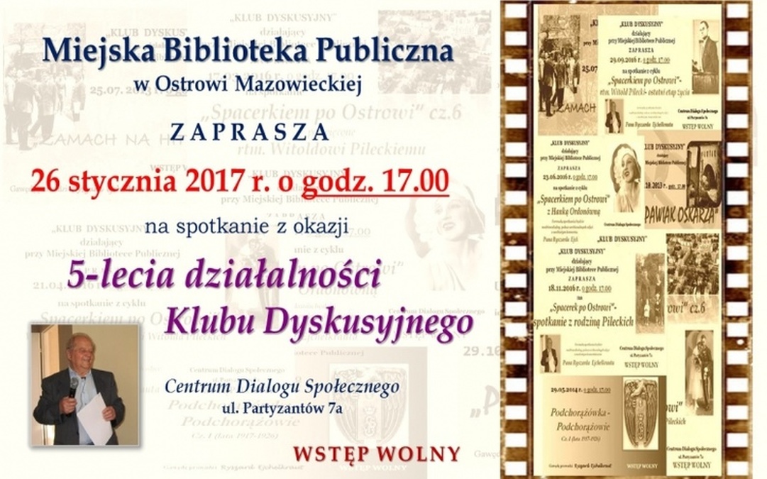 Miejska Biblioteka Publiczna w Ostrowi Mazowieckiej zaprasza na spotkanie z okazji 5-lecia działalności Klubu Dyskusyjnego.