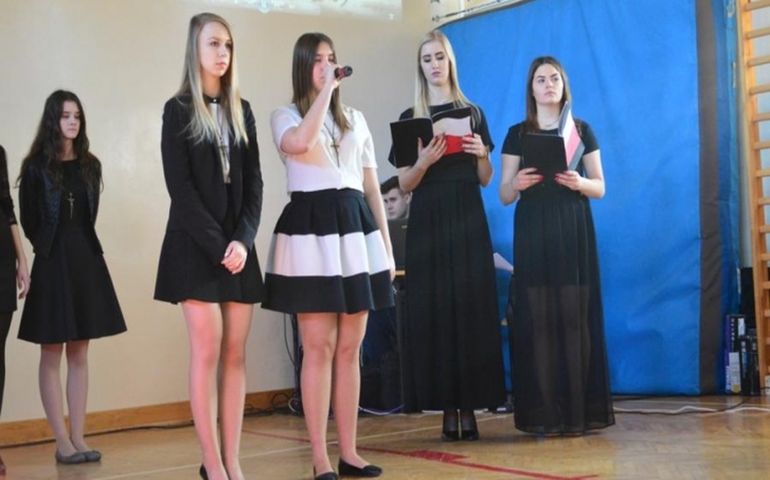 Podczas uroczystości uczniowie klasy I LOB wraz z nauczycielami przygotowali montaż słowno-muzyczny.