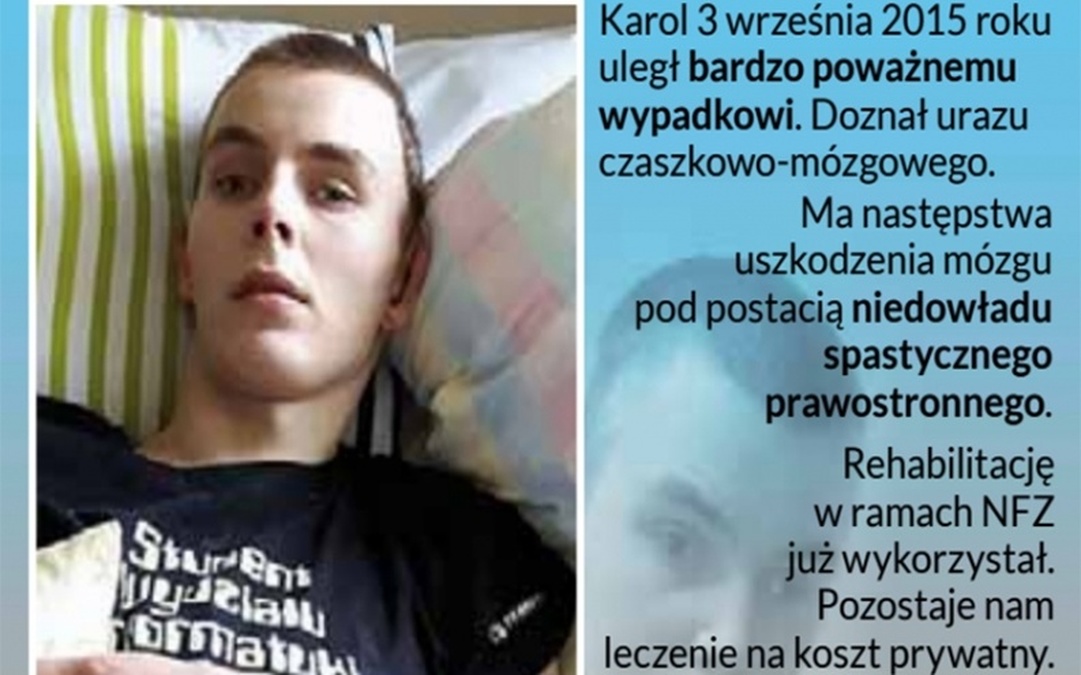 Karol Olszewski na skutek wypadku doznał wielu obrażeń, w tym poważnego urazu mózgu. Powrót do zdrowia wymaga kosztownej rehabilitacji. Aby go wspomóc zorganizowano koncert charytatywny, który odbędzie się w niedzielę 2 kwietnia o godz. 18.00 w teatrze Scena Kotłownia.