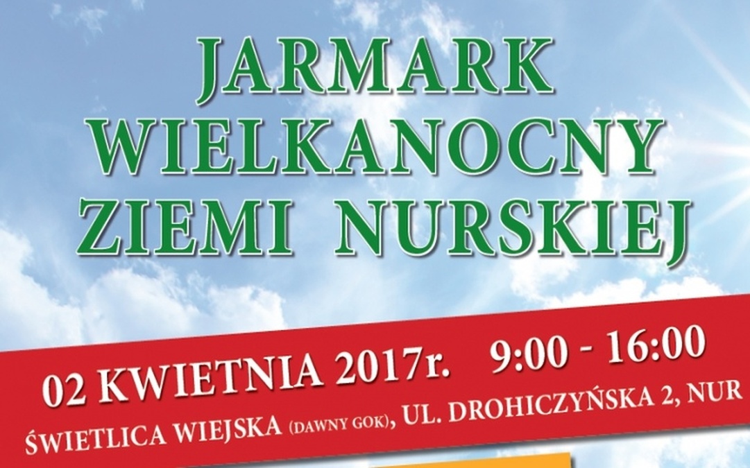W świetlicy wiejskiej przy ul. Drohiczyńskiej w Nurze odbędzie się w niedzielę 2 kwietnia jarmark wielkanocny ziemi nurskiej. W dawnym Gminnym Ośrodku Kultury w godz. 9.00-16.00 będzie można podziwiać stragany z lokalnymi wyrobami, nie zabraknie też warsztatów wykonywania ozdób wielkanocnych.