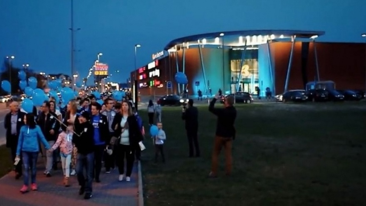 Około godziny 20.00 Galeria Bursztynowa zaświeciła na niebiesko i tym symbolem rozpoczął się niebieski marsz ulicami miasta. Razem z osobami chorymi na autyzm oraz ich opiekunami maszerował także prezydent Ostrołęki, Janusz Kotowski.