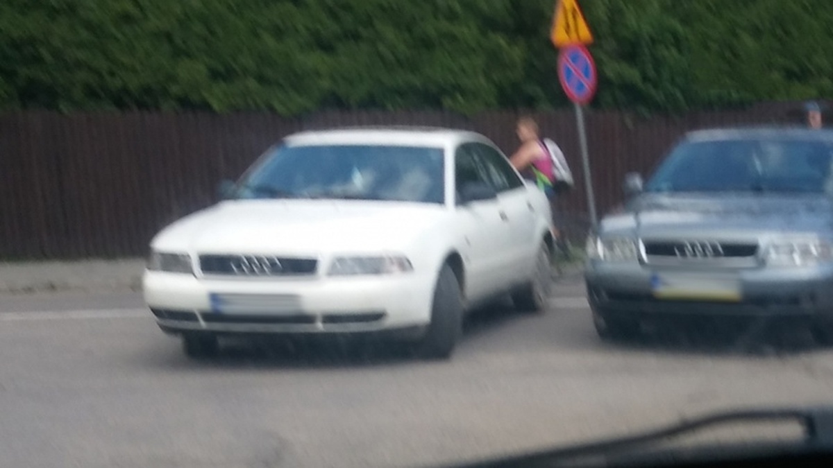 Kierowcy audi na tablicach rejestracyjnych z powiatu ostrowskiego zostawili swoje pojazdy na całej szerokości jezdni.