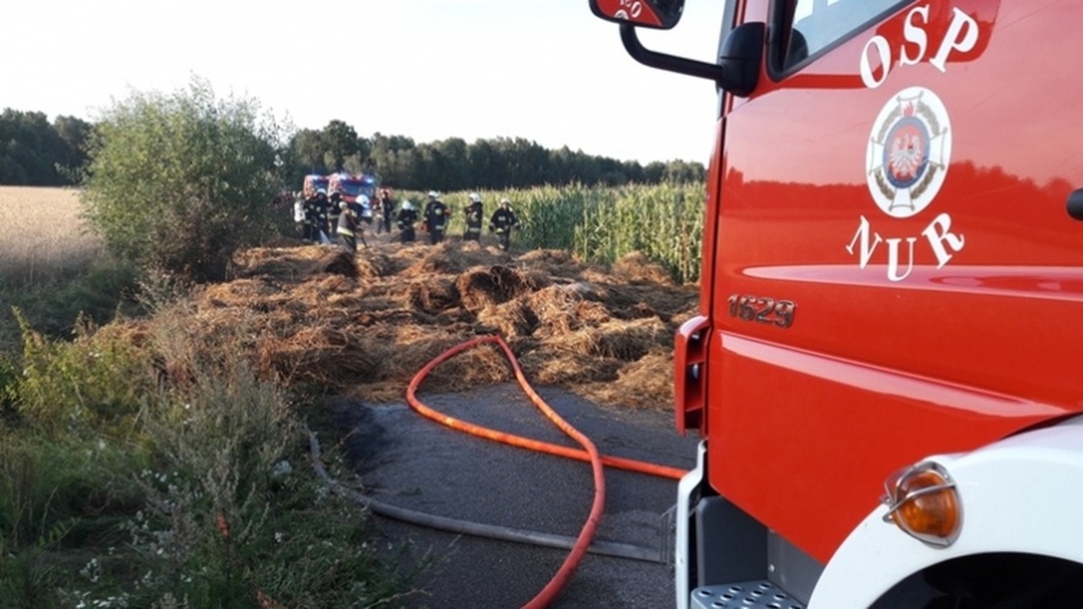 Wczoraj po godz. 18.15 doszło do pożaru przyczepy wypełnionej belami słomy w miejscowości Ołtarze-Gołacze w gminie Nur. Przyczepa z niewyjaśnionych przyczyn zapaliła się na drodze podczas jazdy.