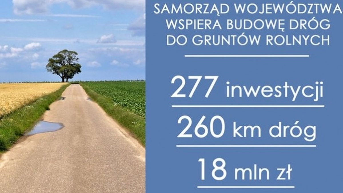 - Od lat wspieramy rolnictwo i dbamy o jego rozwój, m.in. przez finansowanie dróg dojazdowych do pól czy gospodarstw rolnych. Tylko od 2011 r. na tego typu inwestycje przeznaczyliśmy ponad 80 mln zł, dzięki czemu udało się zbudować i zmodernizować ponad 1100 km połączeń do gruntów rolnych. Cieszę się, że po raz kolejny możemy wesprzeć lokalne samorządy w realizacji tak ważnych dla rolników i mieszkańców wsi przedsięwzięciach - podkreśla marszałek Adam Struzik.