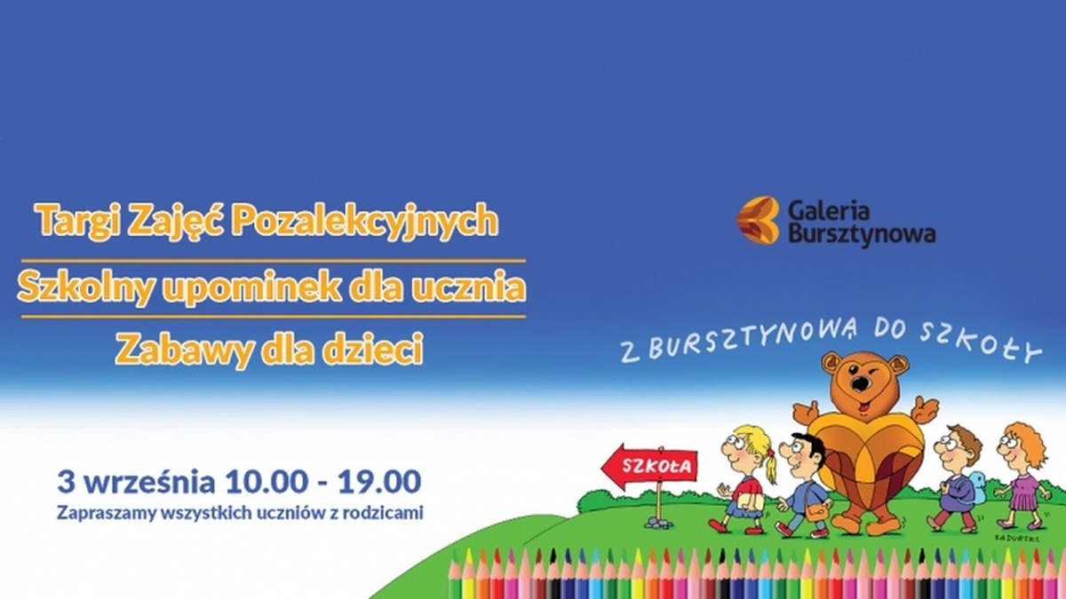 Już w najbliższą niedzielę Galeria Bursztynowa zaprasza wszystkich uczniów wraz z rodzicami do udziału w imprezie pt. "Z Bursztynową do szkoły". Tego dnia odbędą się w centrum handlowym targi zajęć pozalekcyjnych oraz gry i zabawy dla dzieci.