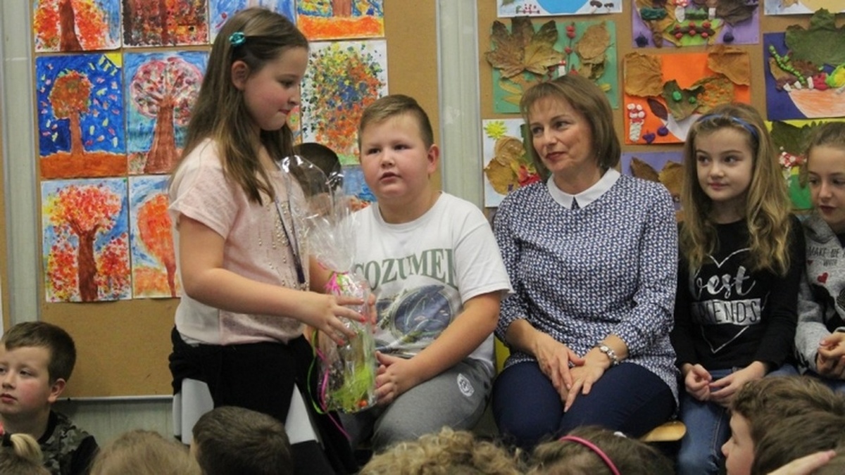 Uczniowie z klasy III c z wychowawczynią Beatą Grochowską, przygotowali dla wszystkich nauczycieli montaż słowno-muzyczny. Dzieci z przejęciem recytowały wiersze, solistki Michalina Modzelewska i Barbara Kumkowska pięknie zaśpiewały piosenki dla nauczycieli. Na uroczystości nie zabrakło oczywiście dyrekcji, nauczycieli, pani pedagog, pani logopedy, pani pielęgniarki, rodziców oraz pań z obsługi szkoły.