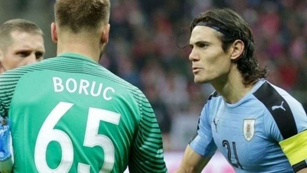(Artur Boruc i Edinson Cavani, fot. Grzegorz Wajda)