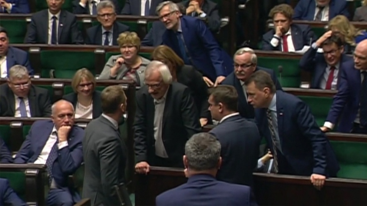 Poseł PO najpierw próbował poskarżyć się marszałkowi Markowi Kuchcińskiemu, a potem krzyknął do Terleckiego: A widział pan jak pan wygląda? Wymiana zdań między parlamentarzystami oburzyła część posłów, którzy krzyczeli i wstawali z miejsc. W charakterze ochroniarza liderów PiS tradycyjnie wystąpił rosły poseł Dominik Tarczyński. Kuchciński kilkakrotnie prosił o ciszę, a kiedy sytuacja się uspokoiła, sejm wrócił do obrad.