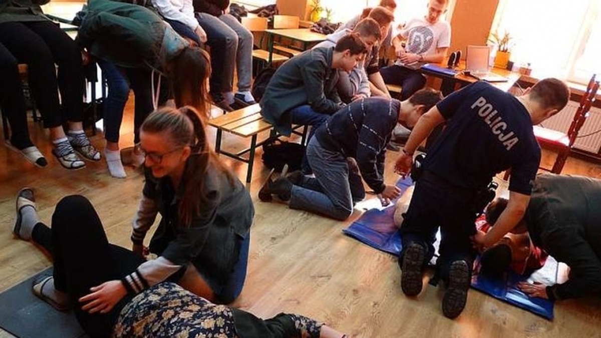 Dzielnicowy sierż. Artur Bobrowski przygotował zajęcia dla uczniów klasy gimnazjalnej w szkole w Starym Lubotyniu. W trakcie zajęć młodzież wysłuchała wykładu pt. "Pierwsza pomoc przedmedyczna - i Ty możesz uratować komuś życie". Następnie odbyły się zajęcia praktyczne.