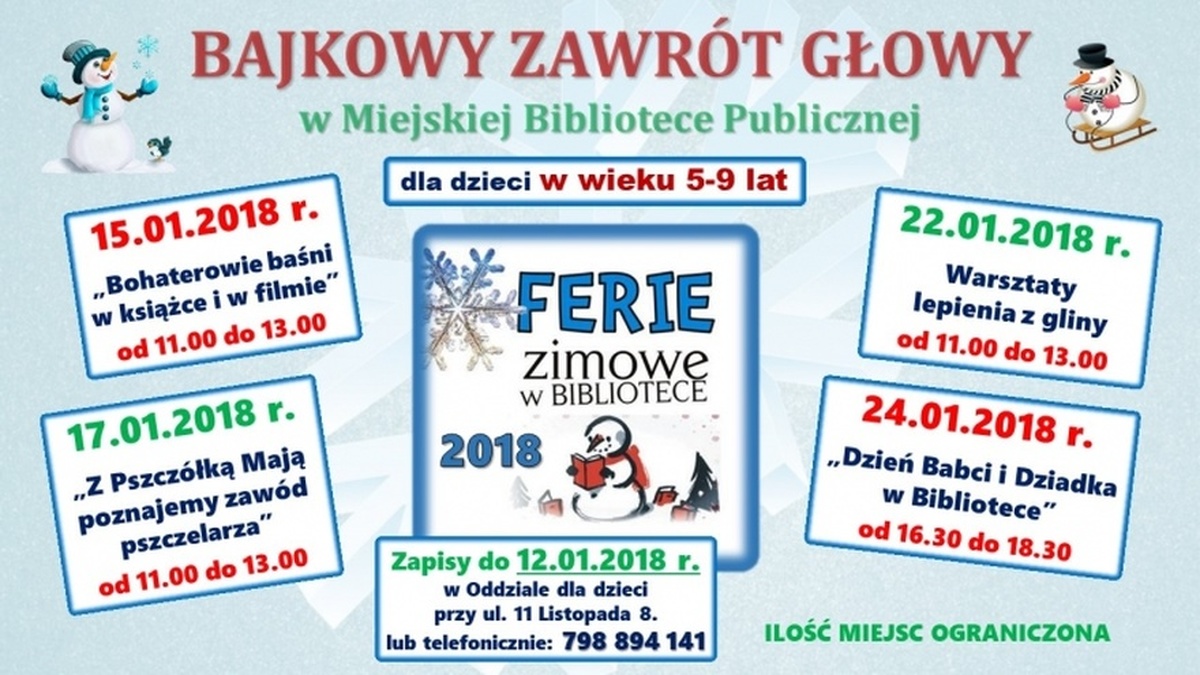 Zapisy trwają do 12 stycznia w Oddziale dla dzieci przy ul. 11 Listopada 8 lub telefonicznie pod nr tel. 798 894 141.