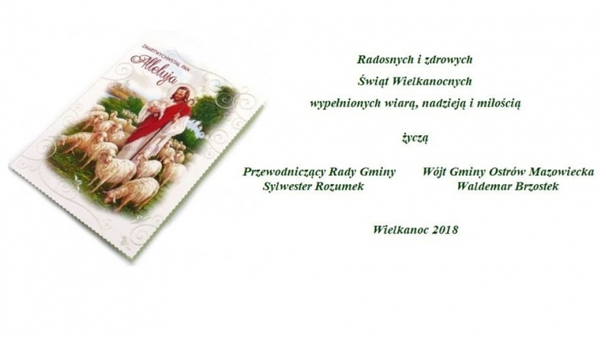 Życzenia wielkanocne składają władze gminy Ostrów Mazowiecka.