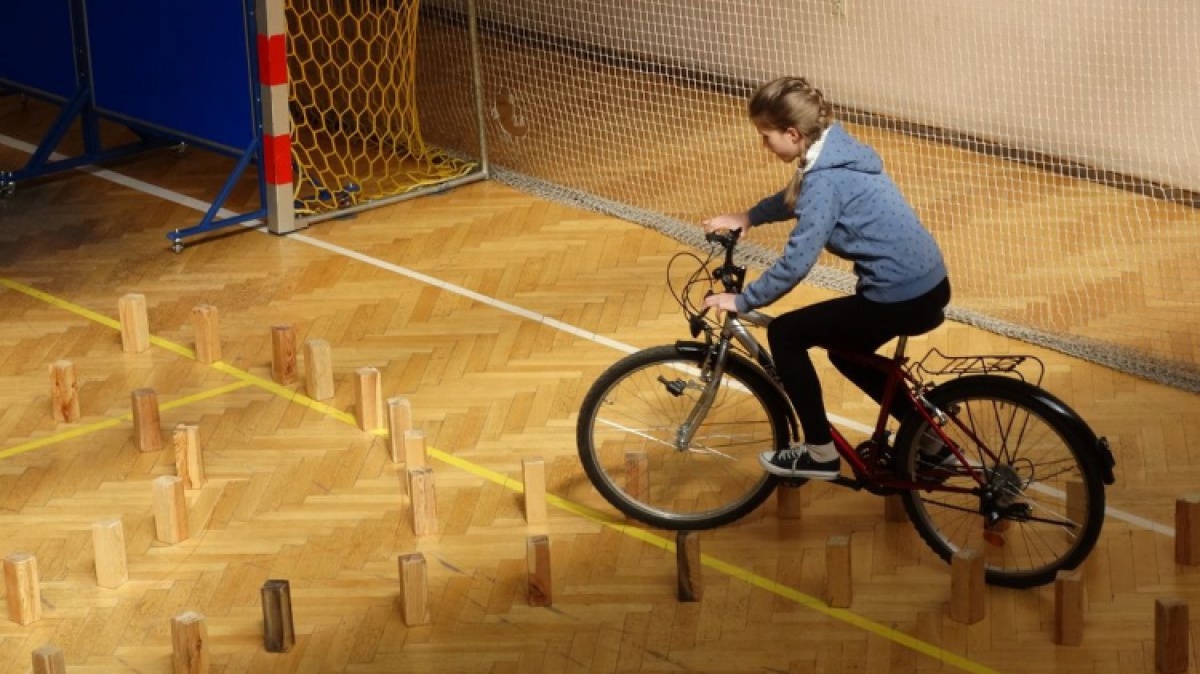 Uczniowie mieli za zadanie rozwiązać test wiedzy oraz musieli pokonać na rowerze trudne przeszkody na placu manewrowym.