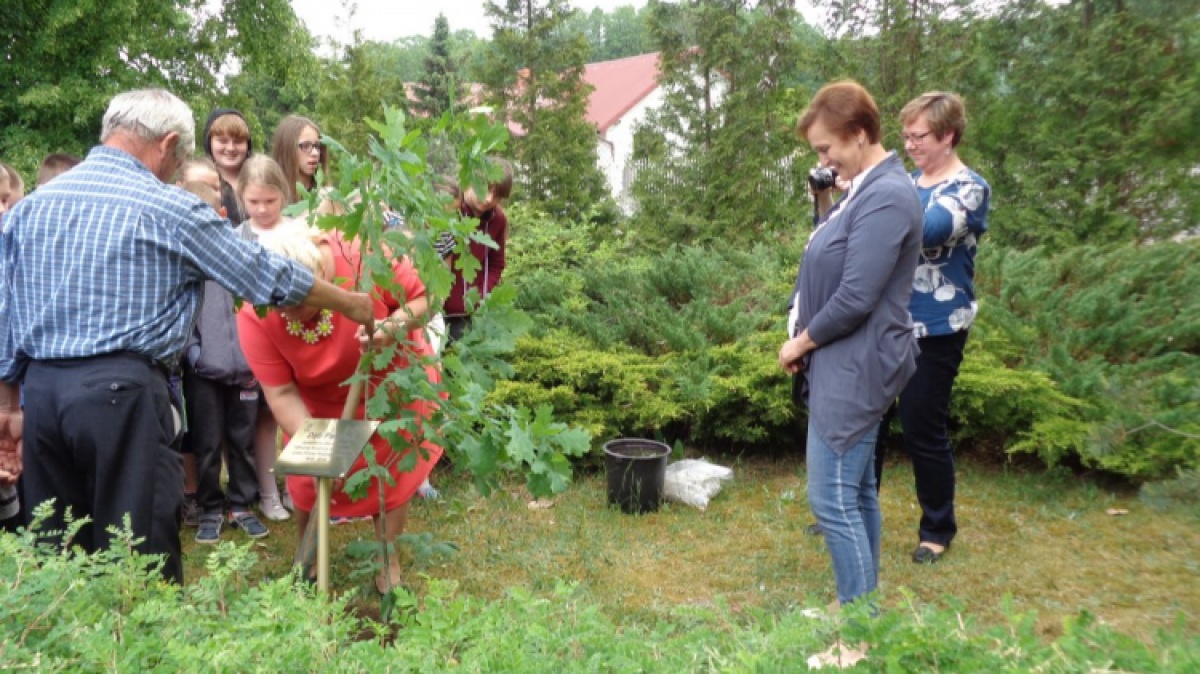 Zwieńczeniem spotkania było posadzenie dębu pamięci w ogródku szkolnym.