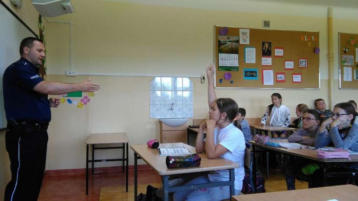 Podczas wizyty w szkole dzielnicowi, mł. asp. Sylwester Andryszczyk oraz sierż. Monika Kaczyńska, przeprowadzili również pogadankę na temat bezpiecznego spędzania czasu przez dzieci podczas nadchodzących wakacji.