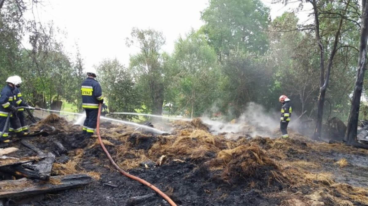 Jak informują strażacy, o godz. 14.26 w sobotę 30 lipca zgłoszono pożar stodoły drewnianej i dwóch obór - drewnianej i murowanej.