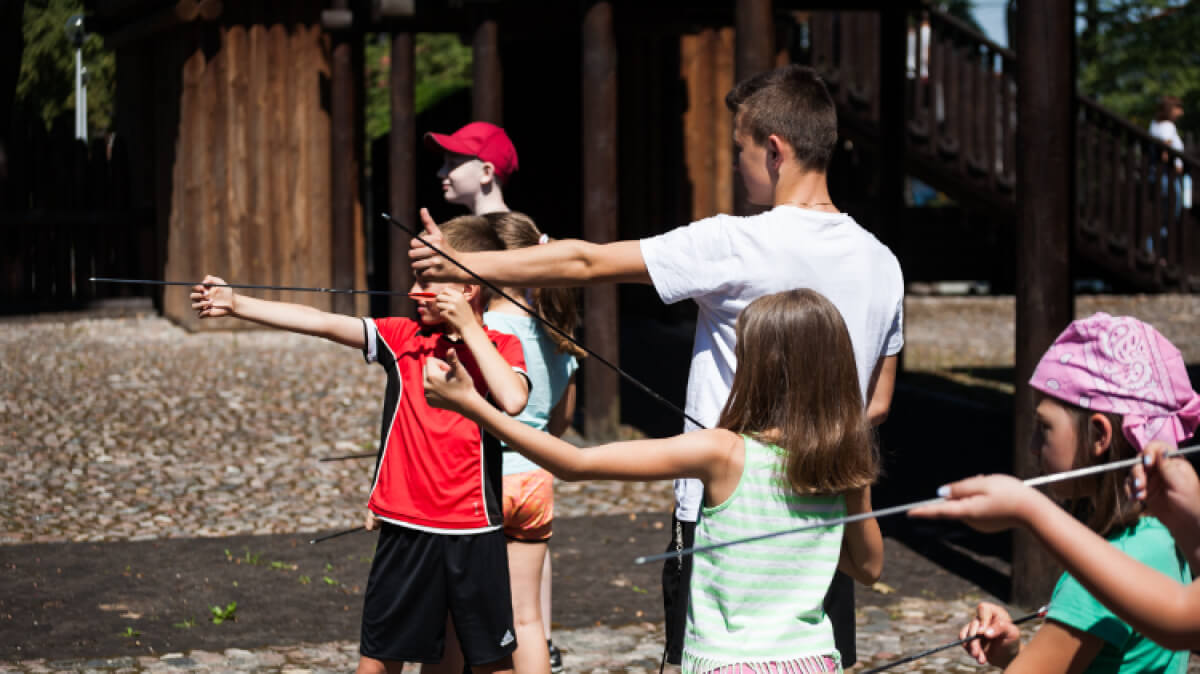 Młodzi adepci uczą się dawnej sztuki strzelania z łuku. Zajęcia trwają trzy godziny. We wtorki i czwartki rozpoczynają się o godz. 11.00, a w niedzielę o godz. 15.00.