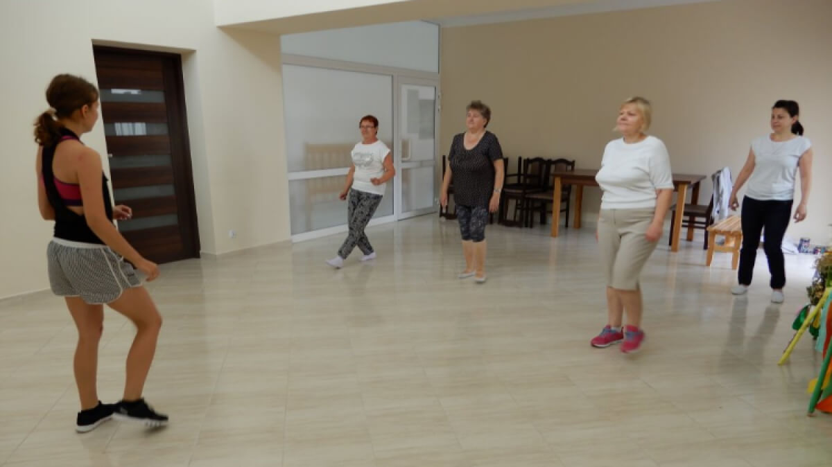 W czwartek 14 czerwca członkowie Klubu Senior+ uczestniczyli w zajęciach z zumby. Ćwiczenia zawierały elementy tańca latynoamerykańskiego i aerobiku.