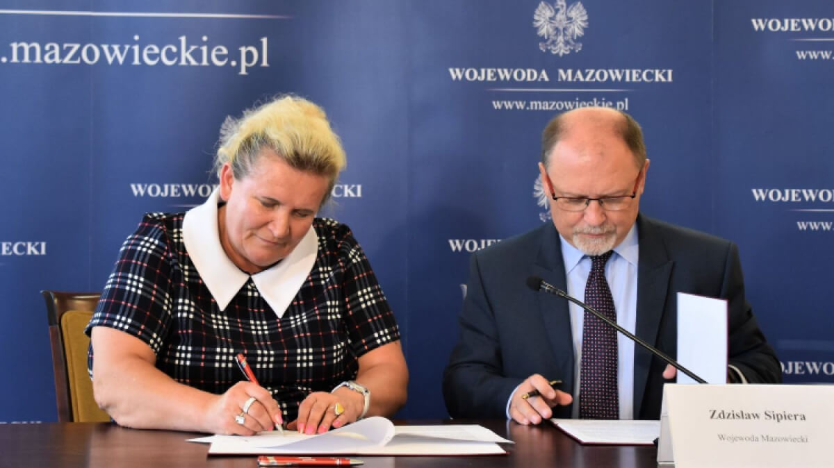 Poprawa bezpieczeństwa na drogach to zadanie realizowane na terenie gminy Małkinia Górna w ramach trzeciej edycji programu "Razem Bezpiecznej". Umowę z wójtem Bożeną Kordek na realizację zadania podpisał Zdzisław Sipiera, wojewoda mazowiecki.