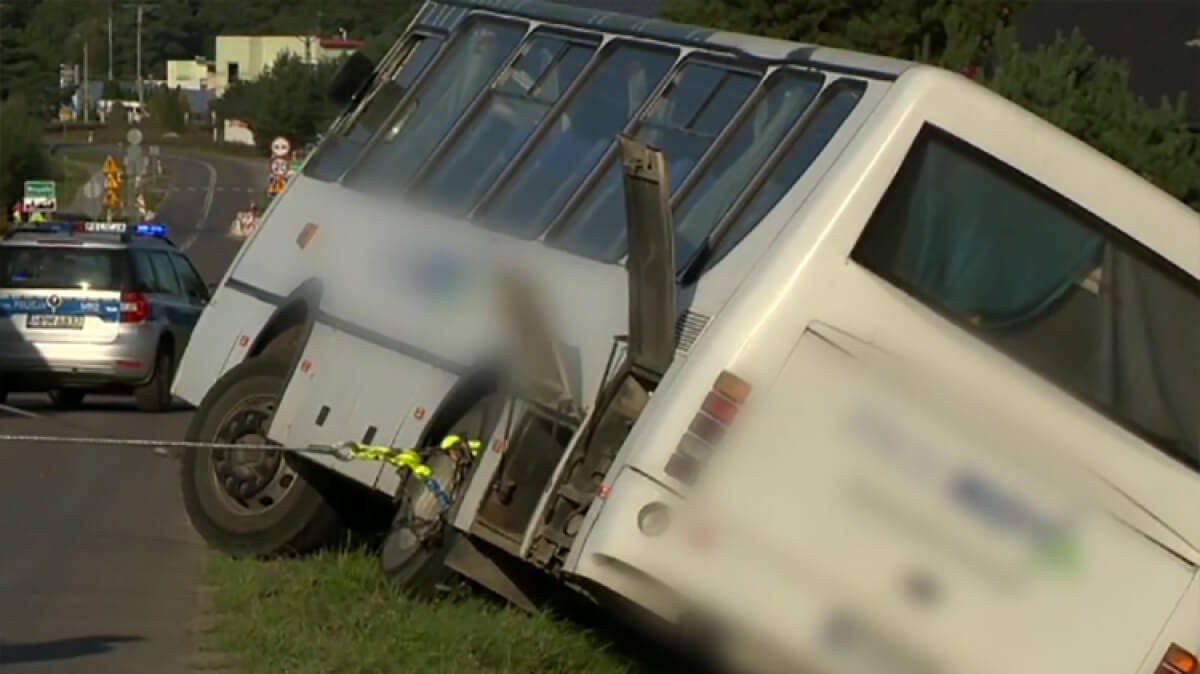 Autokar przewożący dzieci wjechał do rowu. Dwójka poszkodowanych trafiła do szpitala (wideo)