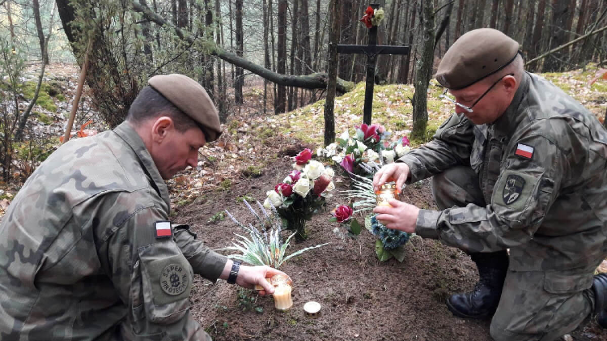 Terytorialsi porządkują miejsca pochówku poległych oraz zapalają symboliczny znicz.