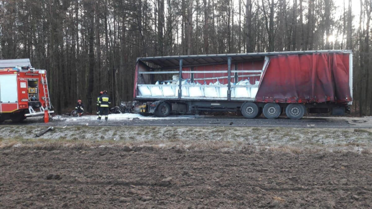 W wyniku zderzenia pojazdów zapaliło się bmw oraz daf, niestety 64-letnia mieszkanka powiatu ostrowskiego zginęła na miejscu. Podczas prowadzonych na miejscu przez policjantów czynności droga była zablokowana. Obecnie ruch odbywa się bez zakłóceń.