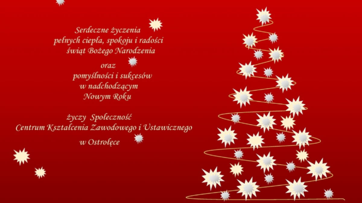 Serdeczne życzenia, pełnych ciepła, spokoju i radości świąt Bożego Narodzenia oraz pomyślności i sukcesów w nadchodzącym Nowym Roku życzy społeczność Centrum Kształcenia Zawodowego i Ustawicznego w Ostrołęce.