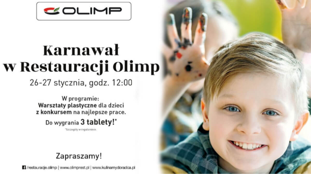 W dniach 26 i 27 stycznia restauracja Olimp wraz z Galerią Bursztynową zapraszają dzieci do udziału w warsztatach plastycznych połączonych z konkursem. Do wygrania będą markowe tablety.