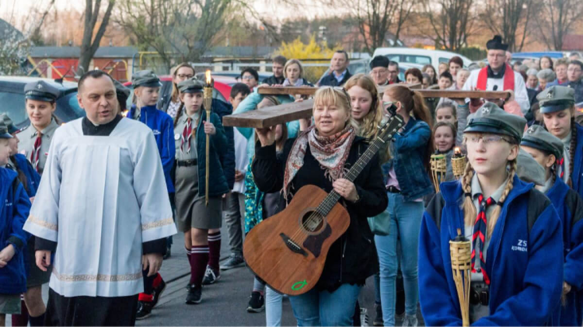 Uczestnicy drogi krzyżowej przeszli ulicą Kościelną i po osiedlu wojskowym, a następnie powrócili do kościoła.