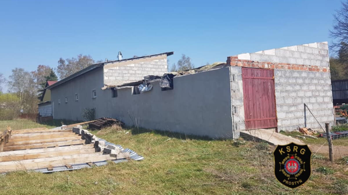 W wyniku silnego wiatru uszkodzony został budynek gospodarczy w Treblince, w którym znajdowały się zwierzęta. Na miejscu pracowali strażacy.