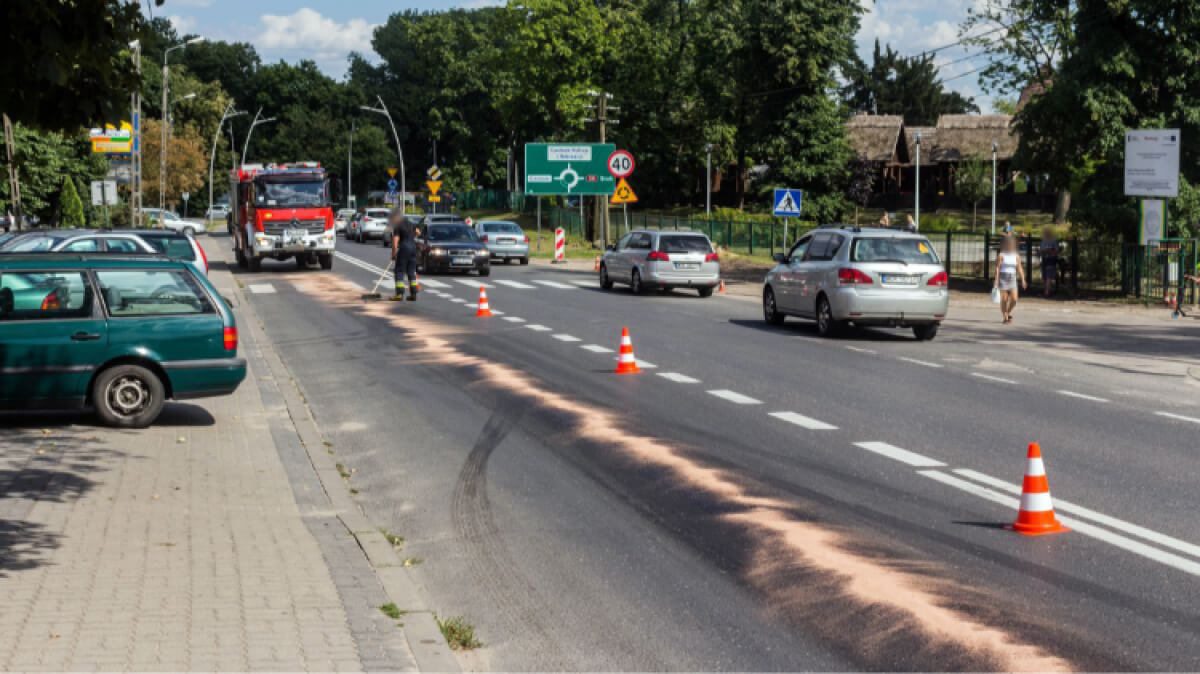 Plamę oleju zgłoszono, w piątek 19 lipca, przed godz. 15.00. Z uwagi na wzmożony ruch samochodów, strażakom pomagali policjanci.