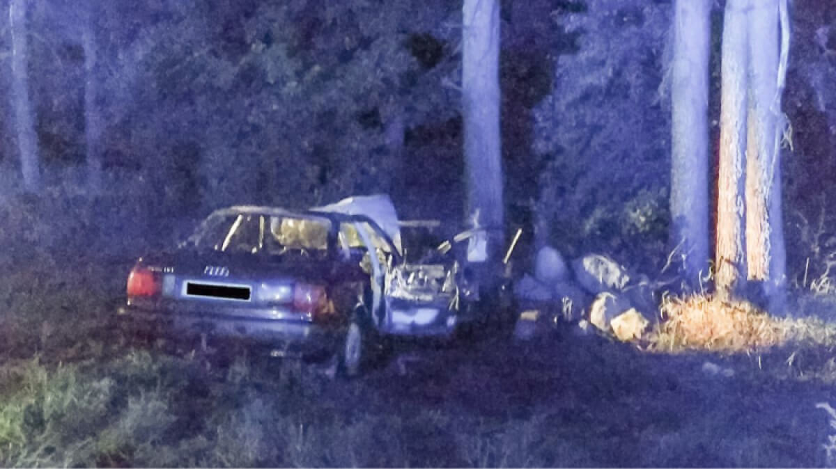 Audi skończyło jazdę na drzewie w Janczewie Wielkim