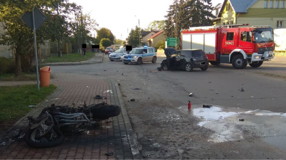Do wypadku drogowego z udziałem motocyklisty doszło wczoraj na ulicy Kowalskiej w Zarębach Kościelnych. Według ustaleń funkcjonariuszy policji przyczyną zdarzenia było wymuszenie pierwszeństwa przejazdu przez młodego kierowcę samochodu osobowego.