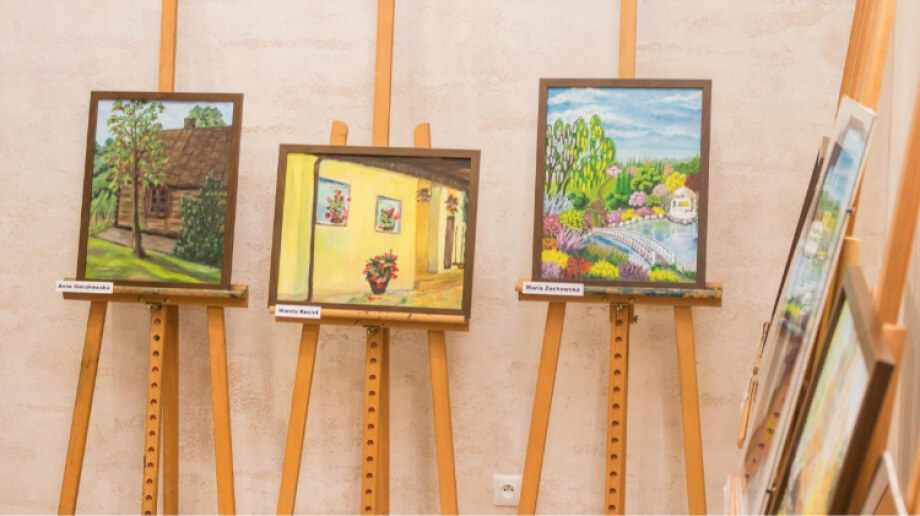 W ostrowskich Jatkach osoby chętne mogą zobaczyć prace grupy uzdolnionych członków Uniwersytetu Trzeciego Wieku. Seniorzy zaprezentowali prace z roku 2018/19 powstałe pod okiem Jolanty Szulborskiej.