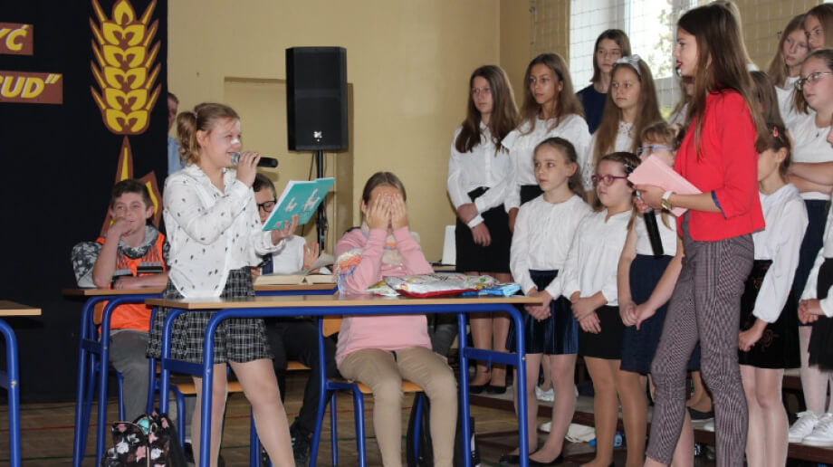 Część artystyczną przygotowali uczniowie klasy VIII a pod opieką Dominiki Pędzich i klasy VI d pod opieką Beaty Łuniewskiej. Uroczystość uświetnił występ szkolnego chóru pod kierunkiem Katarzyny Trętowskiej. Uczniowie w zabawny sposób przekazali najciekawsze momenty charakterystyczne dla wspólnej doli uczniów i nauczycieli. Bywało śmiesznie, bywało też wzruszająco. Z całą pewnością występ dał wszystkim okazję nie tylko do świetnej zabawy, ale i refleksji.