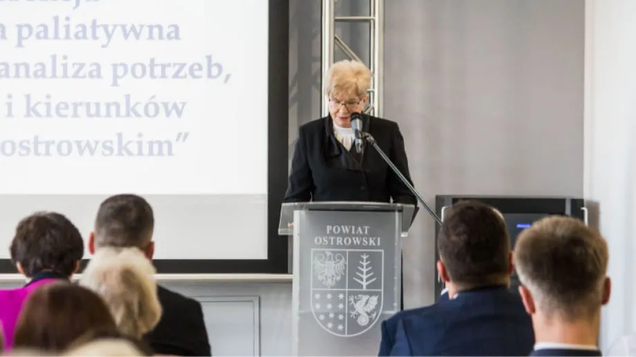 Po otwarciu konferencji przez starostę ostrowskiego, głos zabrała Krystyna Kosiorek przedstawiając problem opieki paliatywnej i hospicyjnej z punktu widzenia seniorów.
