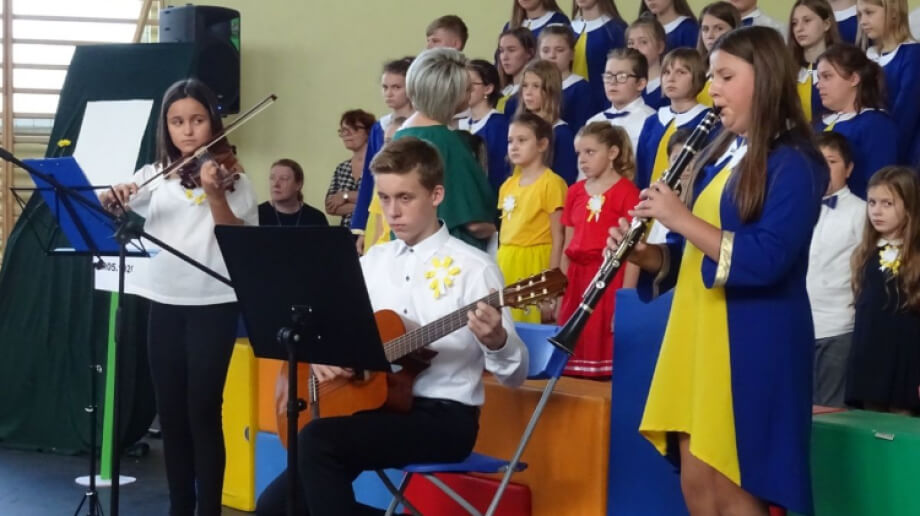 Uroczystość uświetnili uczniowie placówki, którzy pod kierunkiem nauczycieli przygotowali część artystyczną. Młodzi aktorzy wspominali papieża, przywołując ciekawe momenty z życia patrona. Na uwagę zasługuje fakt, że w przedstawieniu pojawiły się treści o charakterze lokalnym. Między innymi spektakl przypomniał wszystkim, w jaki sposób ostrowianie żegnali papieża, gdy ten odchodził do Domu Ojca. Chór szkolny oraz soliści śpiewali piosenki związane z Janem Pawłem II. Uczniowie klas piątych zatańczyli taniec z pomponami.