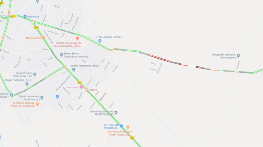 Do wypadku drogowego doszło na trasie pomiędzy Ostrowią Mazowiecką a Ugniewem na miejscu zdarzenia pojawił się śmigłowiec Lotniczego Pogotowia Ratunkowego.