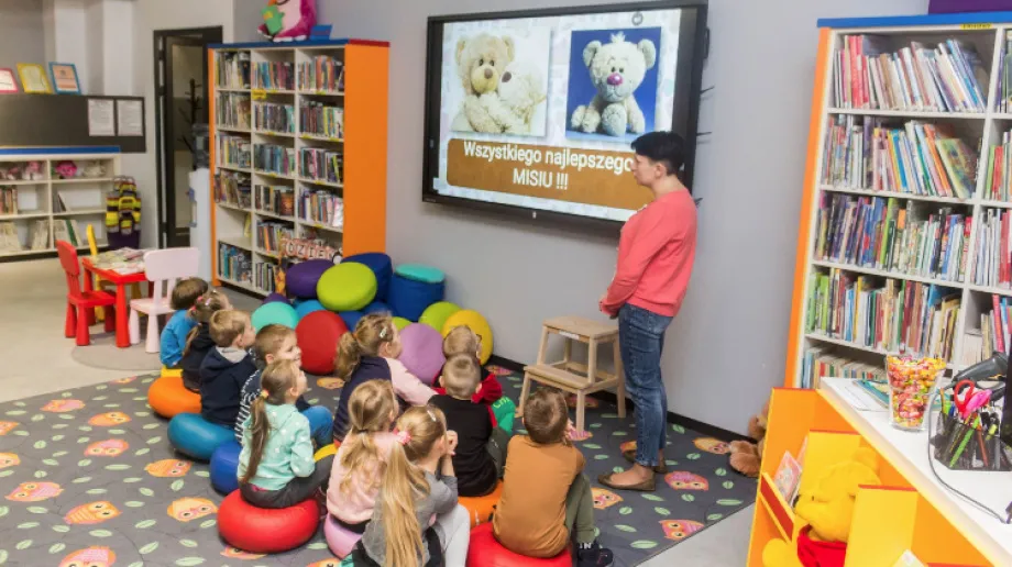 Dla zorganizowanych grup dzieci zostały przygotowane zabawy, tj. odgadywanie imion misiów z bajki, układanie puzzli z misiami, czy czytanie bajkowych opowieści z ich udziałem.