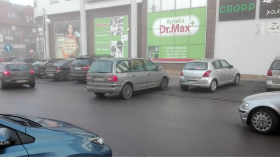 Zdjęcie mistrza parkowania nadesłał do nas Mateusz. Na fotografii widać zaparkowanego volkswagena sharana, który prawdopodobnie samoczynnie zjechał na jezdnię blokując tym samym ruch.