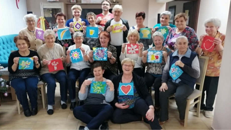 Każdy senior miał możliwość samodzielnego wypraktykowania techniki batiku. Wszystkie prace, które powstały podczas warsztatu, zostały zawieszone na specjalnie przygotowanej tablicy w Klubie Seniora.