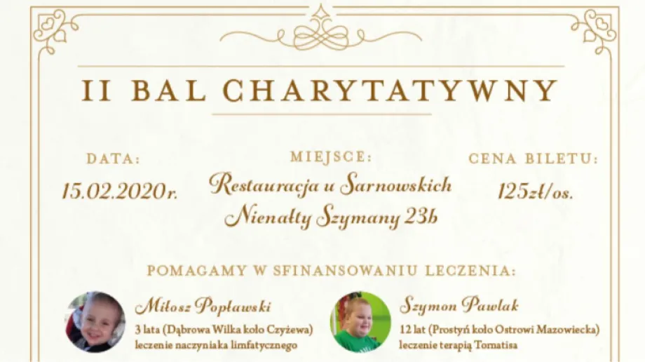 Już w najbliższą sobotę, 15 lutego, odbędzie się druga edycja balu charytatywnego "U Sarnowskich". Tym razem zebrane pieniądze przeznaczone zostaną na leczenie Miłosza i Szymona.